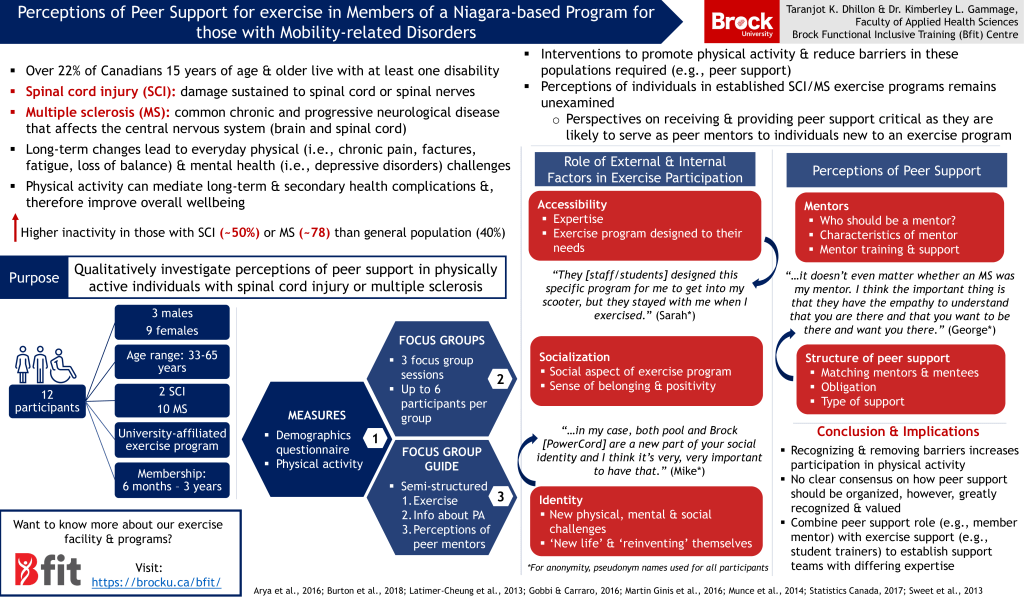 Dhillon, T. K., & Gammage., K. L. (Manuscript in Progress). Perceptions of peer support for exercise in members of a Niagara-based program for those with mobility-related disorders.